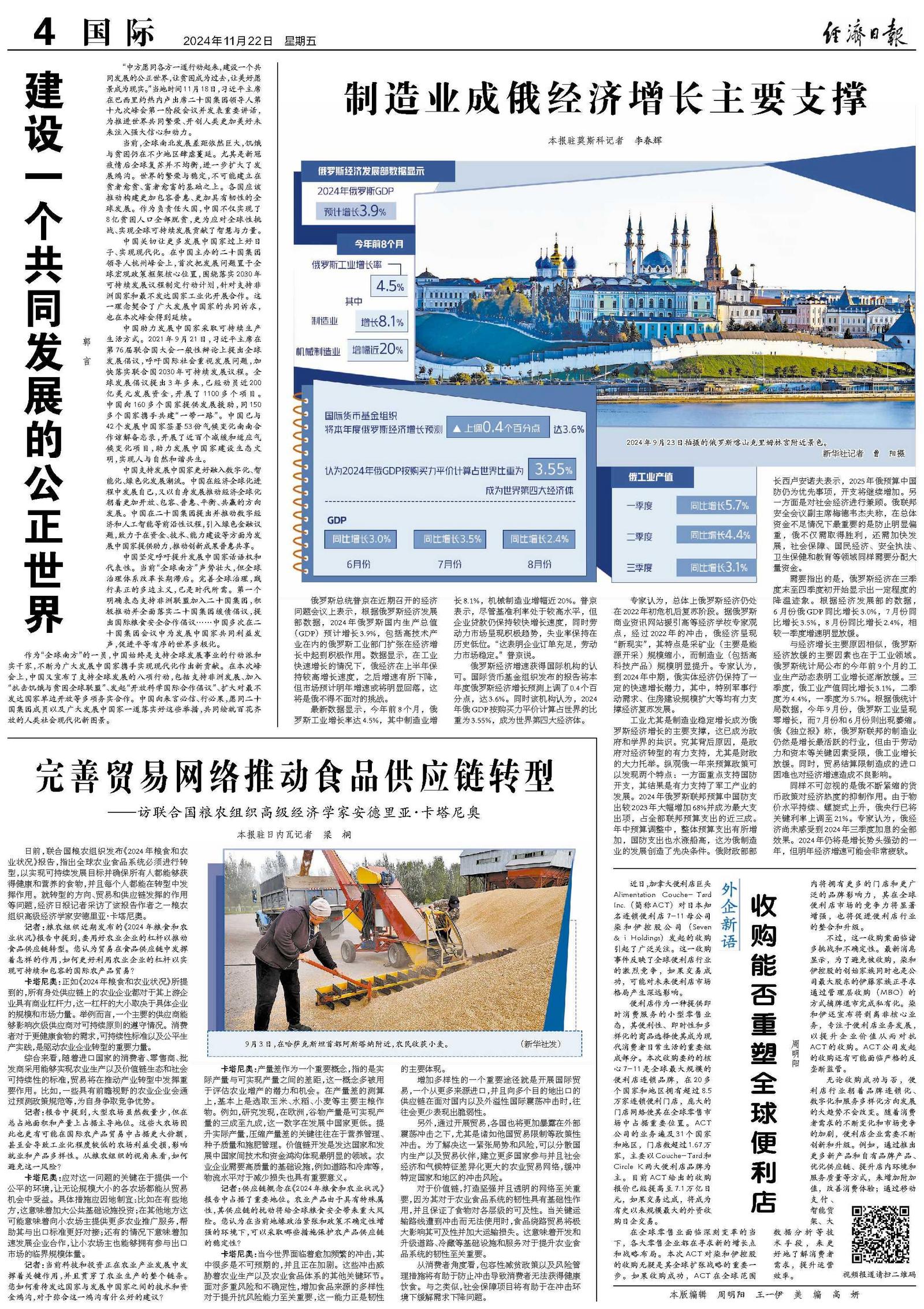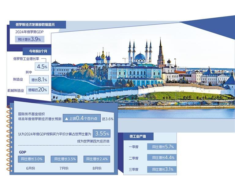 俄罗斯经济增速获得国际机构的认可。国际货币基金组织发布的报告将本年度俄罗斯经济增长预测上调了0.4个百分点,达3.6%。同时该机构认为,2024年俄GDP按购买力平价计算占世界的比重为3.55%,成为世界第四大经济体。