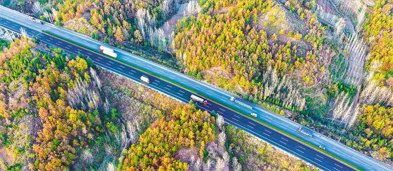 十一月二十一日,河南省南阳市西峡县沪陕高速重阳镇段,车辆有序通行。近年来,当地扎实推进路网建设,带动沿线地区经济社会发展。