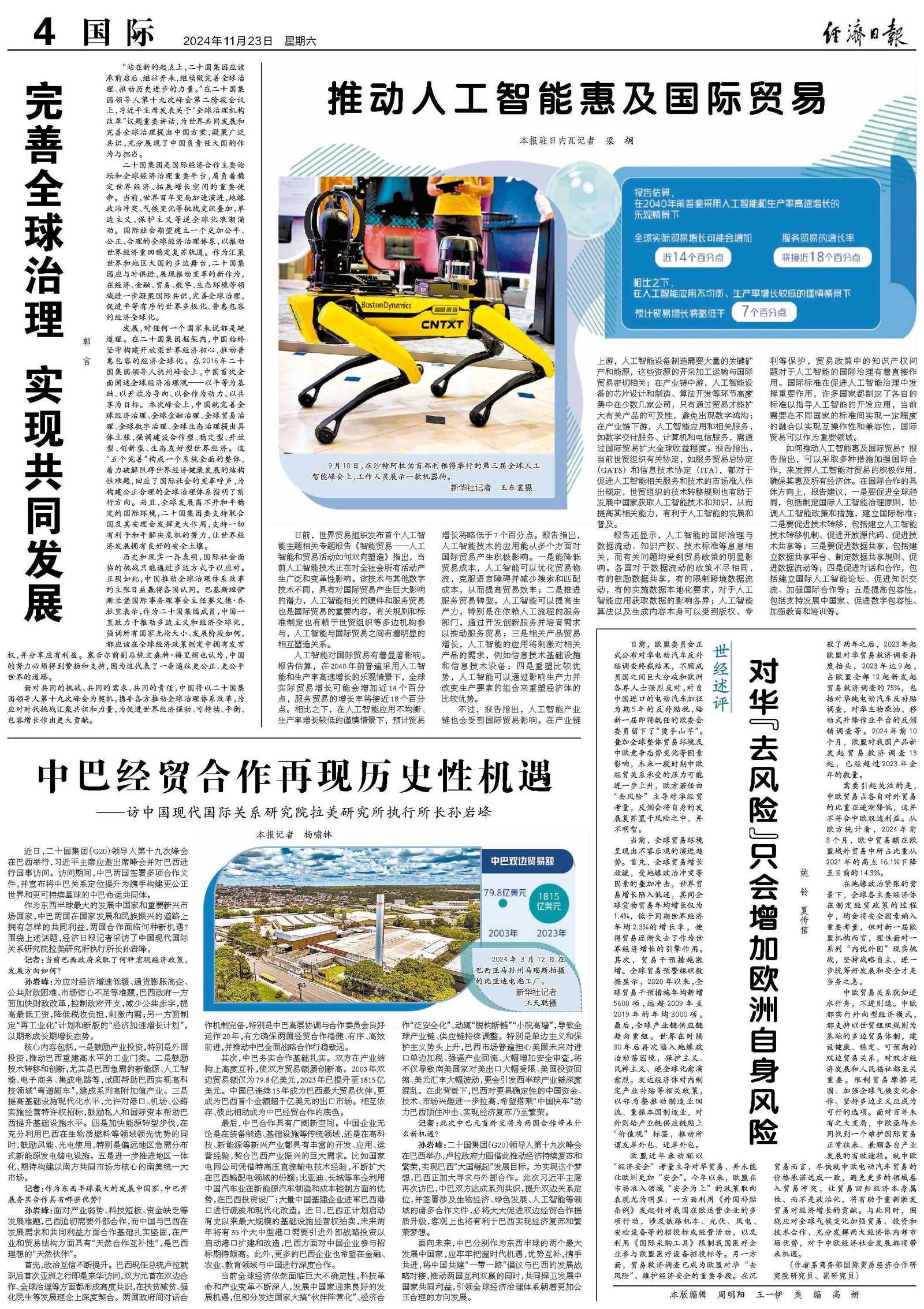 日前,欧盟委员会正式公布对华电动汽车反补贴调查终裁结果,不顾成员国之间巨大分歧和欧洲各界人士强烈反对,对自中国进口的电动汽车加征为期5年的反补贴税,给新一届即将就任的欧委会委员留下了“烫手山芋”。叠加全球整体贸易环境及中欧竞争态势变化等因素影响,未来一段时期中欧经贸关系承受的压力可能进一步上升,欧方若任由“去风险”主导对华经贸考量,反倒会将自身的发展复苏置于风险之中,并不明智。