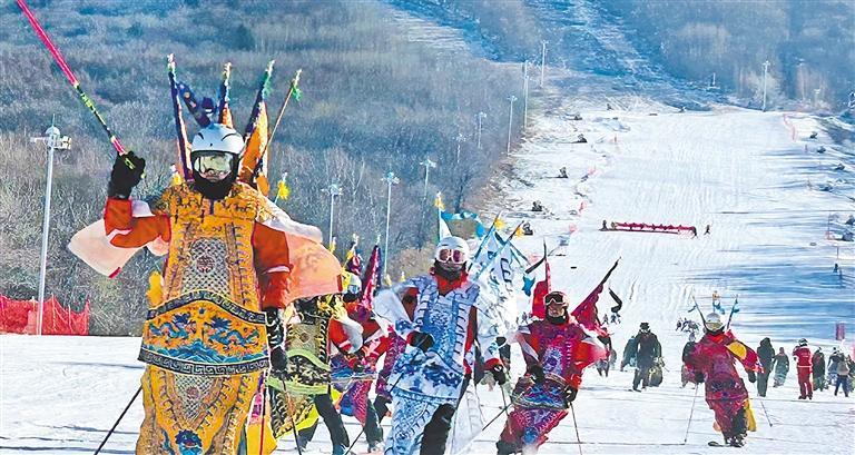 11月23日,吉林省2024—2025新雪季开板暨第30届吉林雾凇冰雪节在吉林北大湖滑雪度假区开幕。图为开板仪式现场的表演者们。