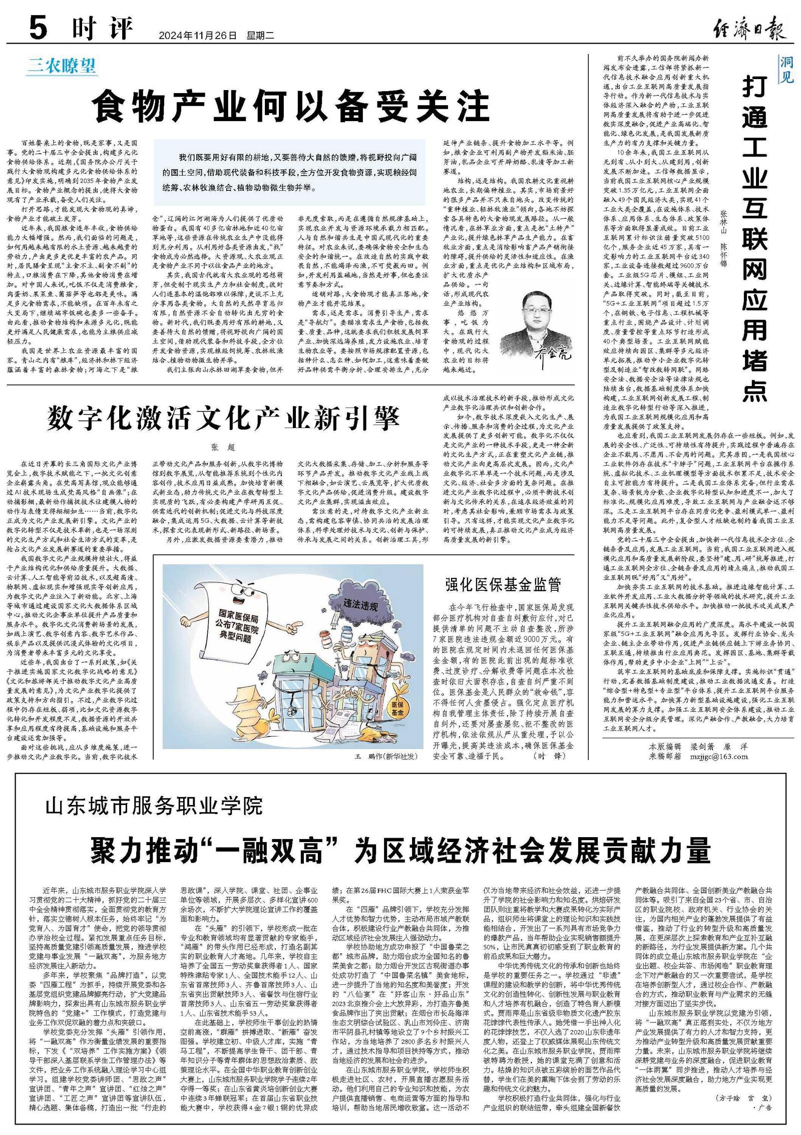 山东城市服务职业学院以党建为引领,将“一融双高”真正落到实处,不仅为地方产业发展提供了有力的人才和智力支持,更为推动产业转型升级和高质量发展贡献重要力量。未来,山东城市服务职业学院将继续深耕党建与业务的深度融合,促进职业教育“一体两翼”同步推进,推动人才培养与经济社会发展深度融合,助力地方产业实现更高质量的发展。
