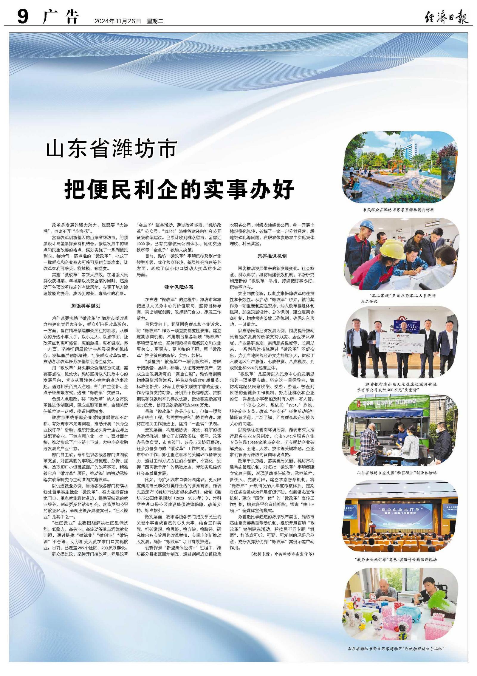 富有改革创新基因的山东省潍坊市,将顶层设计与基层探索有机结合,聚焦发展中的难点和民生改善的堵点,谋划实施了一系列便民利企、接地气、落点准的“微改革”,办成了一批群众和企业身边可感可及的实事难事,让改革红利可感受、能触摸、有温度。