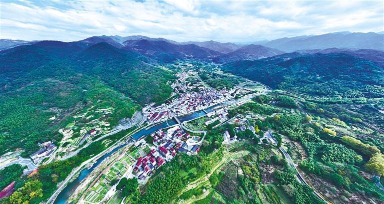 浙江省嵊州市下王镇十八都江两岸,村居、河流、道路相映成趣,风景如画。近年来,当地坚持生态立镇,加快绿色发展,实施绿化建设工程,推广树木种植认养,现有森林面积7106公顷,林地面积5936公顷,森林覆盖率达到83.55%。