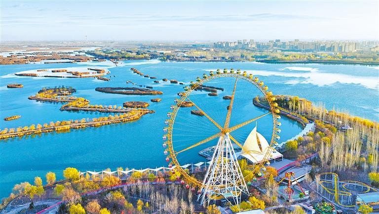 11月26日,宁夏银川市金凤区,阅海国家湿地公园风景秀美。近年来,当地加大湖泊湿地修复力度,人居环境持续改善。目前,银川市共有5个国家级湿地公园、近200个自然湖泊,湿地总面积5.31万公顷。袁宏彦摄(中经视觉)