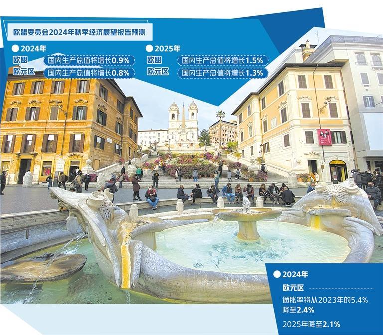长期增长潜力疲软是欧元区债务风险的核心诱因之一。欧盟委员会的最新报告提出,2024年欧元区经济预计增长0.8%,2025年这一数字仅略微上升至1.3%。欧盟经济事务专员保罗·真蒂洛尼表示:“结构性挑战和地缘政治的不确定性仍对欧盟的未来前景构成压力。”