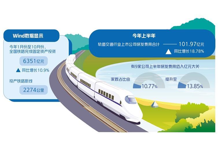 随着技术不断进步,智慧交通项目的成本效益比也在不断提高。在业内人士看来,产业链上市公司想要乘势而上,可以通过技术迭代升级,做大做强自身产品,进一步提升核心竞争力。还可以加大研发力度,培育新动能,从传统制造向高技术和服务转型。数据显示,今年上半年,轨道交通行业上市公司研发费用合计101.97亿元,同比增长18.78%。有9家公司上半年研发费用迈入亿元大关,家数占比由10.77%提升至13.85%。研发强度大于10%的公司家数占比15.38%。