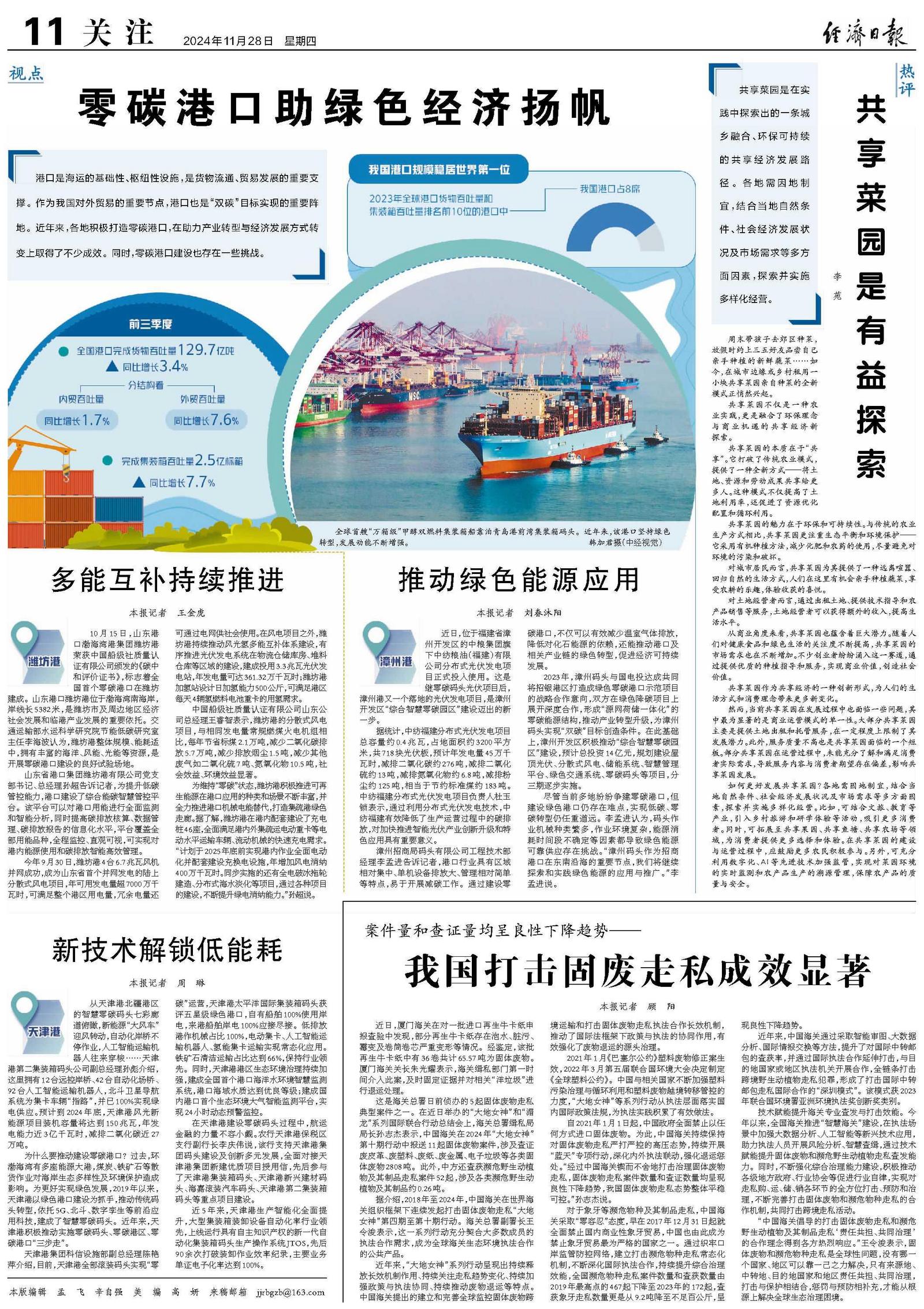 山东省港口集团潍坊港有限公司党支部书记、总经理孙超告诉记者,为提升低碳管控能力,港口建设了综合能碳智慧管控平台。该平台可以对港口用能进行全面监测和智能分析,同时提高碳排放核算、数据管理、碳排放报告的信息化水平,平台覆盖全部用能品种,全程监控、直观可视,可实现对港内能源使用和碳排放智能高效管理。