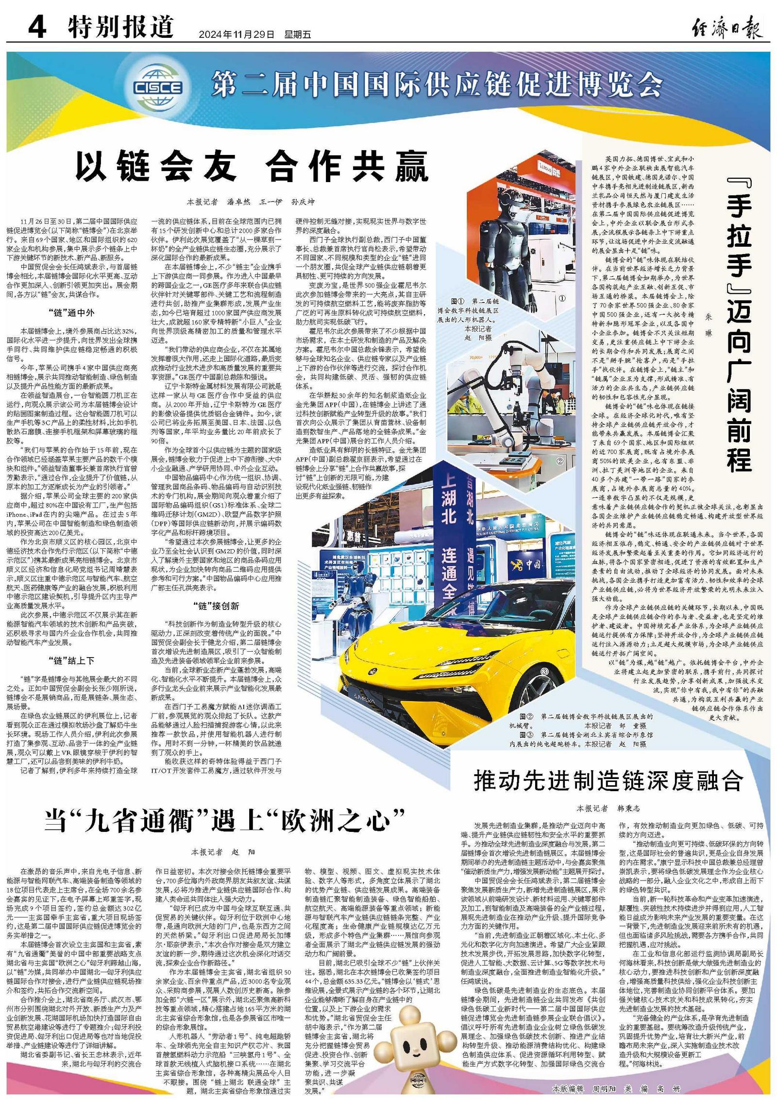 目前,湖北已吸引全球不少“链”上伙伴关注。据悉,湖北在本次链博会已收集签约项目44个,总金额635.33亿元。“链博会以‘链式’思维设展,全景式展示产业链的各个环节,让湖北企业能够清晰了解自身在产业链中的位置,以及上下游企业的需求和优势。”湖北省贸促会主任胡中海表示,“作为第二届链博会主宾省,湖北将充分把握链博会贸易促进、投资合作、创新集聚、学习交流平台功能,进一步凝聚共识、共谋发展。”
