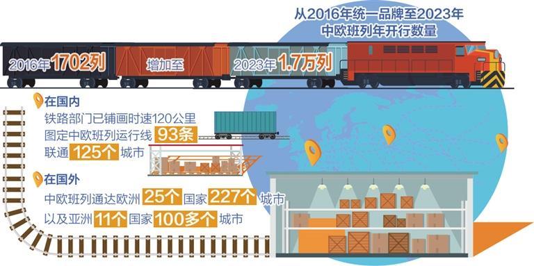 2016年统一品牌以来,中欧班列年开行数量由1702列增至2023年1.7万列,年运输货值增长超7倍。开行万列所需时间由开行之初的90个月缩短至6个月。这份运行成绩单,彰显中欧班列服务共建“一带一路”亮眼成效。
