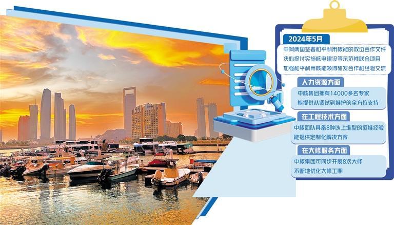 中核集团与阿联酋核能公司的合作可追溯到数年前。随着中阿两国全面战略伙伴关系走深走实,近年来,中核集团与阿联酋核能公司的合作稳步推进,反映了两国在和平利用核能领域合作的共同愿景。2024年5月,中阿两国签署了和平利用核能的双边合作文件,在双方发表的联合声明中强调,决心探讨实施核电建设等示范性联合项目,加强和平利用核能领域研发合作和经验交流,以支持和平核能的发展。同期,中核集团与阿联酋核能公司签署战略合作谅解备忘录。作为战略合作的重要组成部分,双方在运维领域不断深入交流,开展合作尝试,共同提升核电机组的运行业绩和供应链的本地化发展。