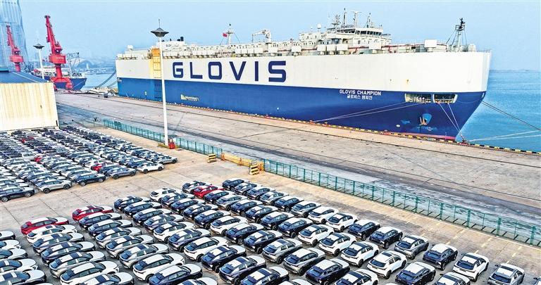 12月5日,江苏省连云港港东方港务分公司码头,滚装轮正在装载出口汽车。临近年末,该港滚装生产按下“加速键”,实行24小时轮流作业,为汽车出口开辟绿色通道,全力冲刺全年出口车辆目标任务。