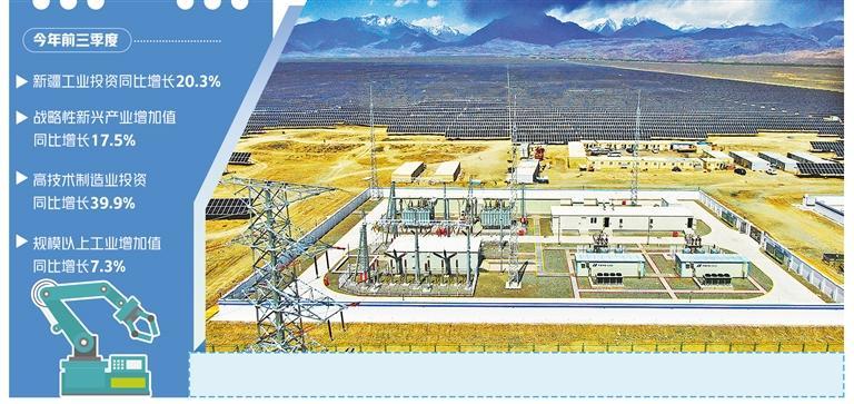 工业投资同比增长20.3%,战略性新兴产业增加值同比增长17.5%,高技术制造业投资同比增长39.9%,规模以上工业增加值同比增长7.3%……今年前三季度,新疆工业经济亮点纷呈。新疆维吾尔自治区统计局副局长郝俊清表示,今年以来,新疆狠抓重大工业项目建设和重要生产要素协调保供,推动工业生产稳定增长、提质增效。