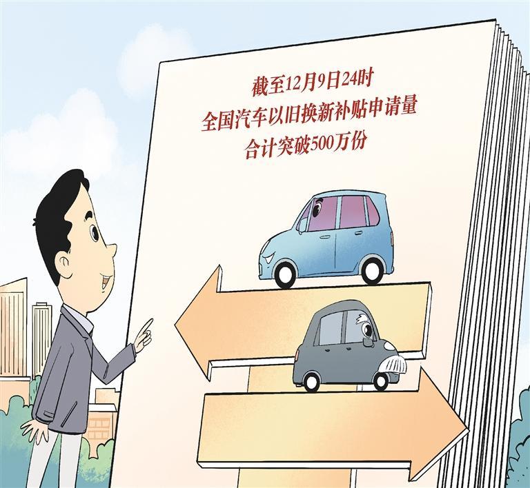 商务部近日发布数据显示,截至2024年12月9日24时,全国汽车以旧换新补贴申请量合计突破500万份,其中,报废更新超244万份,置换更新超259万份。当前,汽车产业已成为我国国民经济的重要支柱产业,汽车产业产值占国内生产总值的比重、汽车消费占中国社会消费品零售总额的比重均在10%左右。在一系列汽车以旧换新行动方案的基础上,各地因地制宜加快出台相关政策,提高补贴标准、增加资金支持、完善配套措施,加大力度推动汽车以旧换新,进一步推动了汽车消费增长和产业升级。接下来,应多方协同发力,进一步加大财政金融政策支持力度,优化以旧换新服务流程提升便利度,各大汽车企业也需积极响应政策推出相关优惠措施,助力消费者轻松实现汽车更新换代。(时 锋)