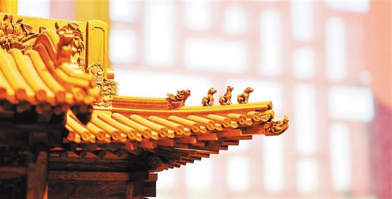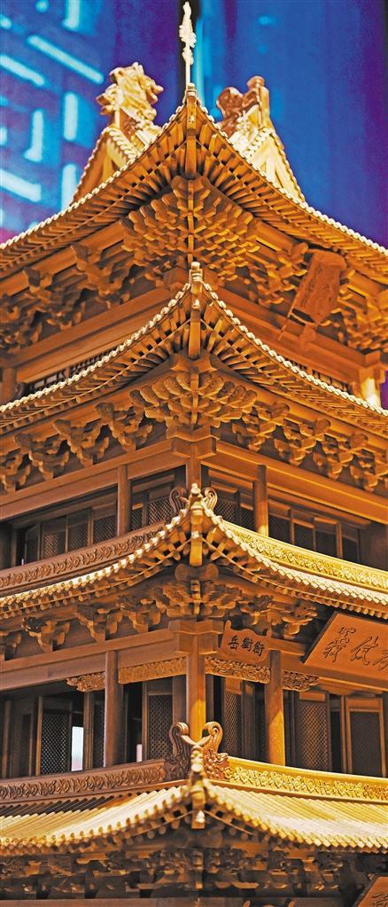 ▶12月1日于中国非物质文化遗产馆拍摄的传统古建筑模型。其斗拱密布、榫卯相扣的连接方式,让中国传统的木结构成为独特的柔性结构体。