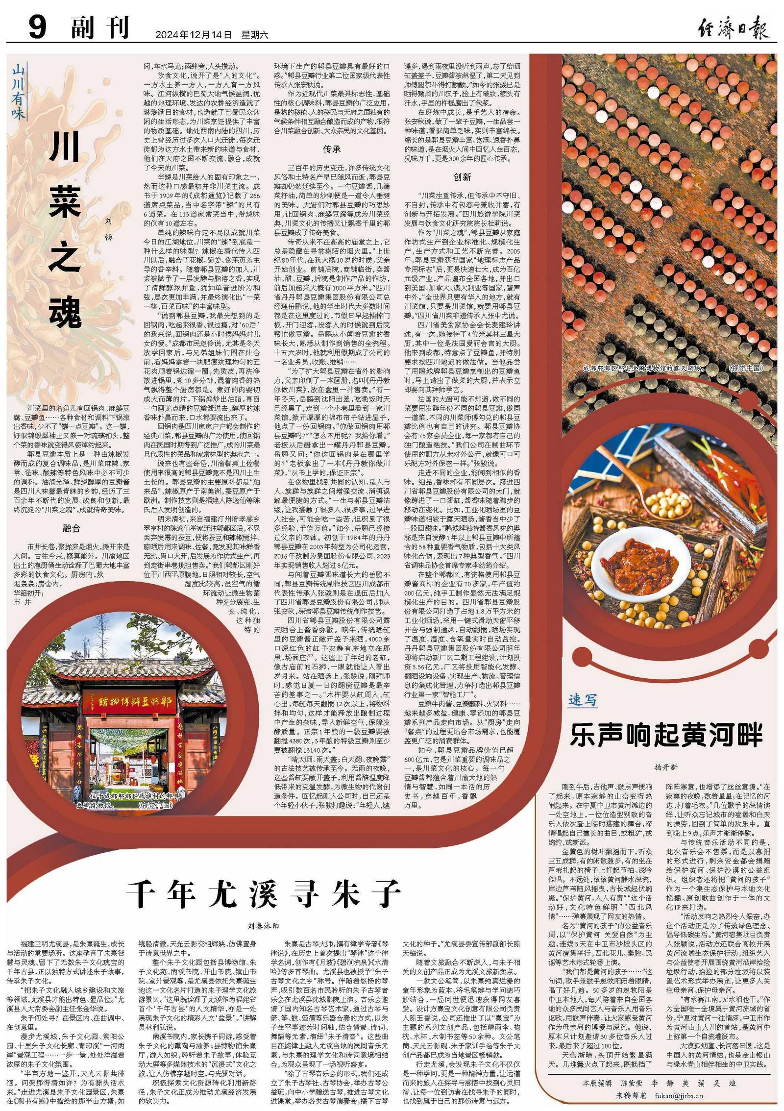 在食物里找到共同的认知,是人与人、族群与族群之间增强交流、消弭误解最便捷的方式。“一生与郫县豆瓣结缘,让我接触了很多人、很多事,过早进入社会,可能会吃一些苦,但积累了很多经验,千值万值。”如今,岳鹏已经接过父亲的衣钵。初创于1984年的丹丹郫县豆瓣在2003年转型为公司化运营,2016年改制为集团股份有限公司,2023年实现销售收入超过8亿元。
