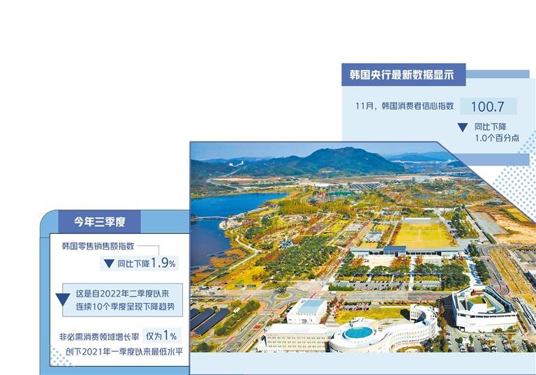 韩国经济最薄弱的一环是内需。消费萎缩在今年变得更加明显,高物价和高利率导致韩国民众越来越不愿打开钱包。数据显示,今年三季度,韩国零售销售额指数同比下降1.9%,从2022年二季度开始,已连续10个季度呈现下降趋势,创下自1995年开始统计相关数据以来的最长连降纪录。尤其是大型超市和免税店的销售额甚至未能恢复到新冠疫情初期的水平,显示出消费疲软已出现结构性固化的风险。