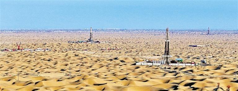 十二月十七日,在新疆沙雅县塔克拉玛干沙漠腹地,中国石油塔里木油田富满油田新井快速上钻。谭 辉摄(中经视觉)