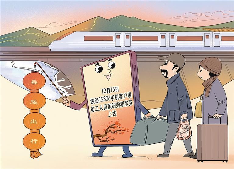 铁路12306科创中心近日发布消息,12月15日,铁路12306手机客户端务工人员预约购票服务上线,符合条件的旅客可通过专区预约购买2025年春运期间往返车票。务工人员作为春运期间的主要出行群体之一,其购票需求量大且集中。铁路部门在总结2024年春运务工人员预约购票工作经验的基础上,科学分析出行规律,优化铁路12306系统功能,2025年春运期间继续推出务工人员预约购票专区服务。该服务能够有效解决务工人员在春运期间购票难的问题,体现了铁路部门对重点群体出行需求的关注和服务意识的提升,并且有助于提升铁路部门的整体服务质量和市场竞争力。接下来,铁路部门应持续优化铁路12306系统功能,努力为广大旅客提供更加便捷高效的购票服务,切实保障重点群体出行。(时 锋)