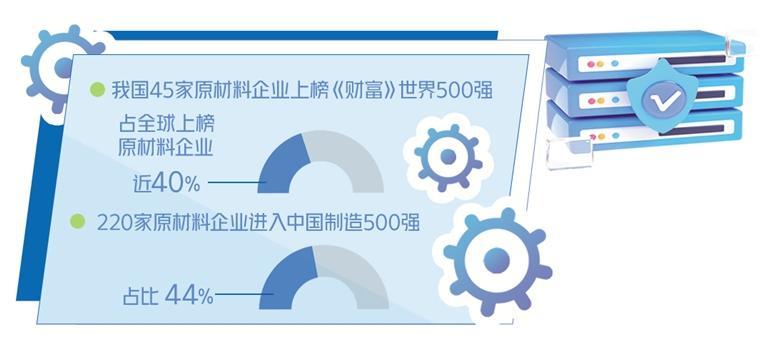 近年来,以钢铁、有色金属、建材等为主的原材料工业优化升级取得明显成绩。从区域看,环渤海、长三角、珠三角三大产业集聚区炼化产能占比达70%;建成并通过认定化工园区708家,产值占石化化工行业70%以上;超900万吨电解铝产能有序转移至清洁能源丰富地区。从企业看,45家原材料企业上榜《财富》世界500强,占全球上榜原材料企业近40%;220家原材料企业进入中国制造500强;累计培育3000余家专精特新“小巨人”企业。