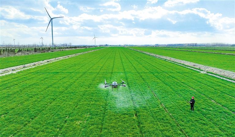 12月18日,位于盐城市的江苏农垦新洋农场组织植保无人机进行田管作业。当前正值越冬期,该农场适时开展综合田管作业,实现壮苗越冬,为夏粮增产丰收打牢基础。
