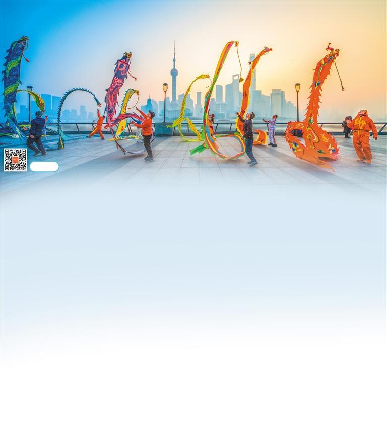 ▲大年初一,舞龙爱好者在上海市外滩进行表演。