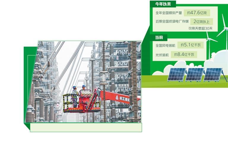 王宏志介绍,今年以来我国持续推动煤炭稳产稳供。有序发展先进产能,加快推进储备煤矿建设,增强供给能力和弹性,全年全国煤炭产量约47.6亿吨。近期全国统调电厂存煤2亿吨以上,可用天数超过30天,迎峰度冬电煤供应充足。同时,统筹推进煤电项目建设,夯实兜底保障作用。