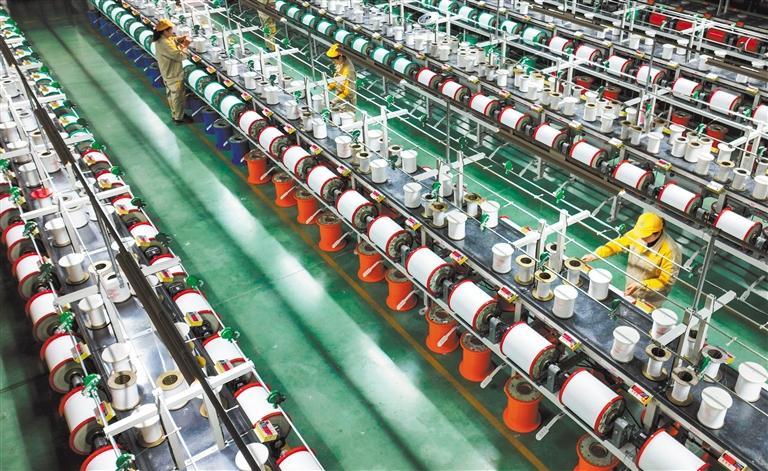 ▲12月11日,工作人员在贵州省贵阳市贵安新区恒力纺织生产车间巡检。