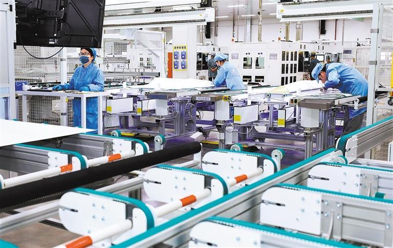 ▶12月16日,安徽省淮北市杜集经济开发区一家新能源生产企业,工人正在赶制光伏组件订单。
