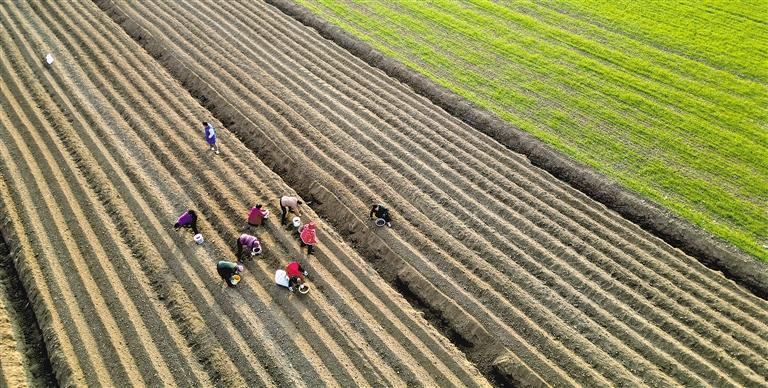 12月23日,安徽省亳州市谯城区古城镇张潭村,村民们正在种植中药材白术根。寒冬时节,当地村民抢抓晴好天气开展中药材种植,为明年药材丰产打下坚实基础。杨中勤摄(中经视觉)