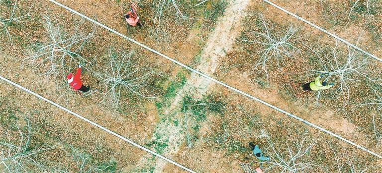▼12月24日,河北省隆尧县牛家桥乡梅庄村果园,果农在修剪果树。冬季是果树的休眠期,也是田间管理的关键期。当地农民开展果树冬剪工作,为来年丰产丰收打下基础。王 铄摄(中经视觉)