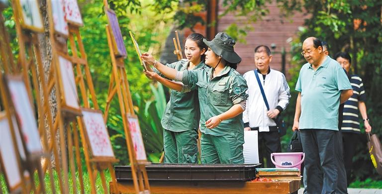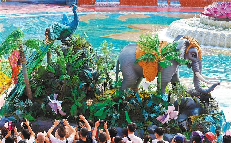 “有野象出没!”在云南西双版纳野象谷一期观象栈道,人们循着导游的声音看去,茂密的原始森林间,一头大象正带着小象在嬉水、觅食,温馨和谐的画面让人感动。