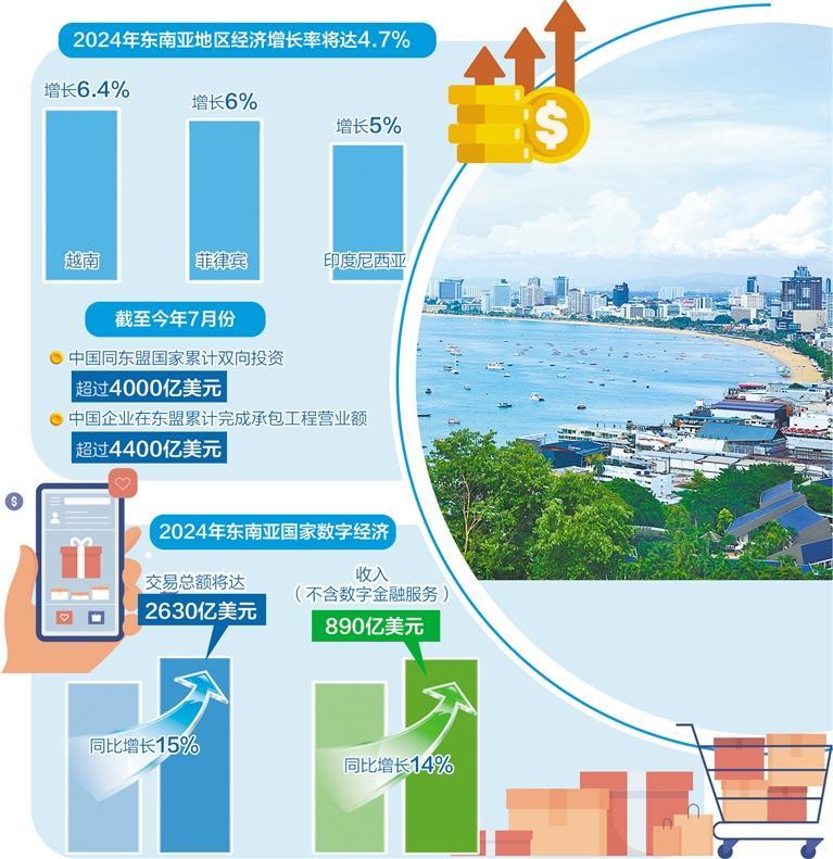 尽管面临全球经济发展具有不确定性、通胀压力仍存等方面的挑战,但据预测,东南亚国家经济在2025年仍将达到4.7%的增长率,有望保持显著增长。多家国际机构预测,东南亚主要国家如马来西亚、印度尼西亚、菲律宾、新加坡、泰国、越南和柬埔寨等经济增速将维持在较高水平。