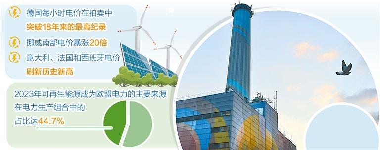 欧洲气温骤降引起电价飞涨。欧洲电力交易所数据显示,12月11日,因预计风力发电水平远低于季节性正常标准,德国日前每小时电价在拍卖中一举突破18年来的最高纪录,飙升至936.28欧元(约合人民币7125.60元)/兆瓦时,折合7.125元/千瓦时。欧洲其他国家的电价形势同样不容乐观,挪威南部电价暴涨20倍,意大利、法国和西班牙电价也纷纷刷新历史新高,就连能源资源相对丰富的丹麦,每千瓦时电的价格亦超过11元。德国能源工业协会表示,此类价格波动并非首次出现,随着极端天气事件的增多以及用电需求的不断增长,今后这种波动恐愈加频繁。