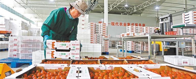 ▲12月25日,浙江嘉兴湘家荡农业数字化工厂,工作人员在包装水果番茄。