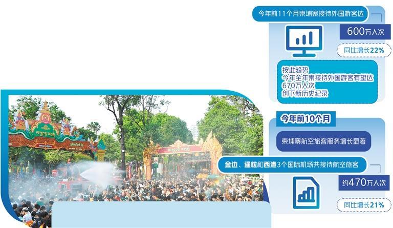 12月13日至15日,柬埔寨第11届海洋节在沿海省份贡布成功举办,期间柬旅游部部长胡海表示,今年前11个月柬埔寨接待外国游客达600万人次,同比增长22%。按此趋势,今年全年柬接待外国游客有望达到670万人次,超过疫情前规模,创下新的历史纪录。旅游业的强劲复苏有力推动了柬埔寨的经济增长。