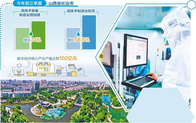 作为全国首批老工业城市和资源型城市产业转型升级示范区,山西长治近年来大力推进产业向“新”“绿”“长”“智”升级,现代化产业体系已初步形成。数据显示,今年前三季度,长治高技术装备制造业增加值增长31%、汽车制造业增长12.6%、医药行业增长12.4%。高技术制造业投资、工业投资、制造业投资分别增长58.6%、14.3%、18%……工业老城正在竞速新的产业赛道。