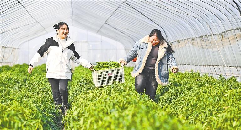 12月27日,在江西省高安市富硒辣椒产业园,村民在采收辣椒。近年来,当地坚持走标准化、规模化、品牌化发展的道路,产业园本季辣椒总产量2万多吨,总产值达1亿元,带动富硒辣椒种植9687户,亩均增收3000元。吴文兵摄(中经视觉)