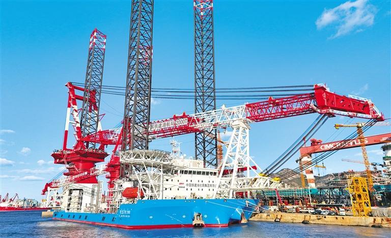 12月28日,第四代自升自航式风电安装船“铁建风电2000”,在中集来福士山东烟台建造基地交付。该船可在水深80米的海域进行20兆瓦以上各型海上风机的安装施工,满足了海上风电行业“深远海、大兆瓦”的趋势,实现了该领域“国船国造国用”的目标。唐 克摄(中经视觉)