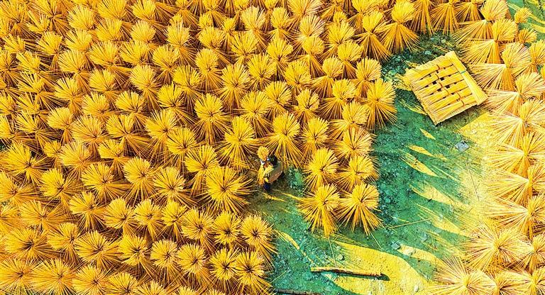 近日,江西省横峰县青板乡徐村竹制品厂的工人正在整理晾晒竹条。近年来,横峰县不断完善“林长制”体系,延伸毛竹产业链,吸纳村民就近就业。薛 南摄(中经视觉)