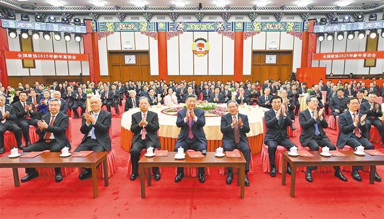 茶话会由中共中央政治局常委、全国政协主席王沪宁主持。他指出,要认真学习贯彻习近平总书记重要讲话精神,毫不动摇坚持中国共产党的全面领导,牢牢把握人民政协性质定位,坚持围绕中心、服务大局,以改革创新精神推进履职能力建设,坚定信心、团结奋进,为全面完成2025年我国经济社会发展目标任务广泛凝心聚力,为以中国式现代化全面推进强国建设、民族复兴伟业而不懈奋斗。