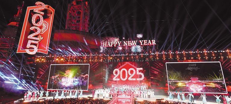 2025年1月1日,人们在北京首钢园参加北京新年倒计时活动。当日,以“京彩之城 共谱新篇”为主题的2025年北京新年倒计时活动在北京首钢园举行。