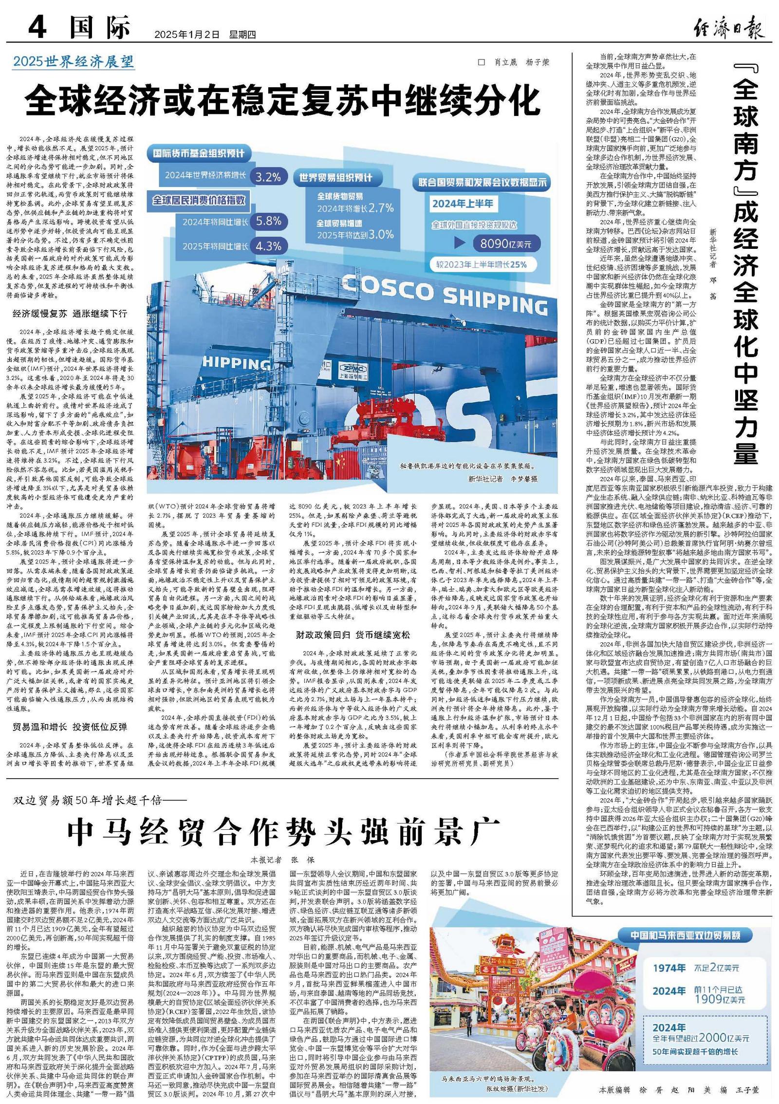 展望2025年,全球经济可能在中低速轨道上曲折前行。疫情对世界经济造成了深远影响,留下了多方面的“疤痕效应”,如收入和财富分配不平等加剧、政府债务负担加重、人力资本形成受损、全球化进程受阻等。在这些因素的综合影响下,全球经济增长动能不足,IMF预计2025年全球经济增速将维持在3.2%。不过,全球经济下行风险依然不容忽视。比如,若美国滥用关税手段,并引致其他国家反制,可能导致全球经济增速降至3%以下,尤其是对美贸易依赖度较高的小型经济体可能遭受更为严重的冲击。