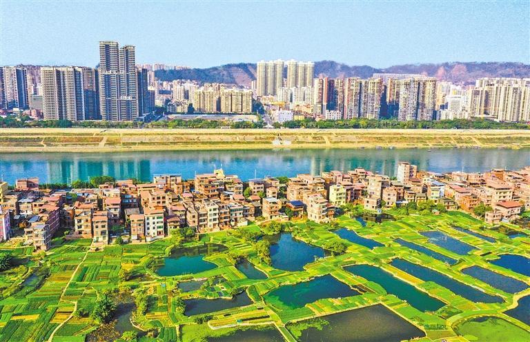 日前,广西梧州市长洲岛生态蔬菜基地内,生态鱼塘、青翠菜畦、碧水蓝天相映成景。近年来,该市依托依山傍水的优势,推进生态修复,大力发展生态蔬菜种植业、生态水产养殖业,有效促进农民增收。颜桂海摄(中经视觉)