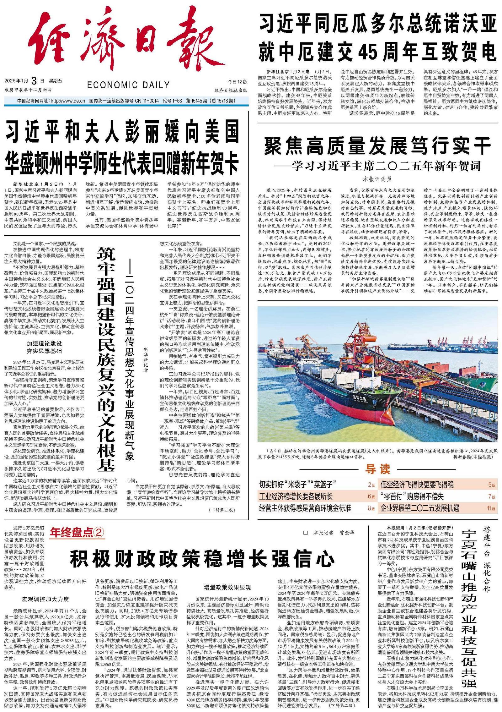 叠加运用地方政府专项债券、专项资金、税收政策等工具,推动房地产市场止跌回稳。国家税务总局统计显示,促进房地产市场平稳健康发展有关税收政策自2024年12月1日起实施的前5日,36.4万户家庭累计减免契税84亿元,促进市场热度有所回升。此外,发行特别国债补充国有大型商业银行核心一级资本等工作正在加快推进。