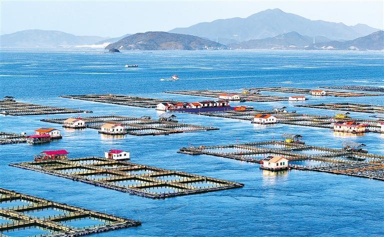 1月2日拍摄的福建省宁德市蕉城区官井洋大黄鱼养殖基地。近年来,当地通过引导产业政策、实施财税优惠等举措,不断做强大黄鱼产业,实现种苗、养殖、加工等全链条提升。王旺旺摄(中经视觉)