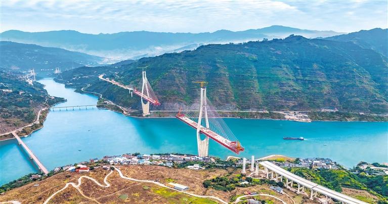 1月3日,云南省昭通市新市金沙江特大桥施工现场,建设者正加紧施工。作为连接川西滇北高速公路网的关键节点,大桥建成通车后,将进一步畅通川滇交通,助推当地经济社会发展。曾三东摄(中经视觉)