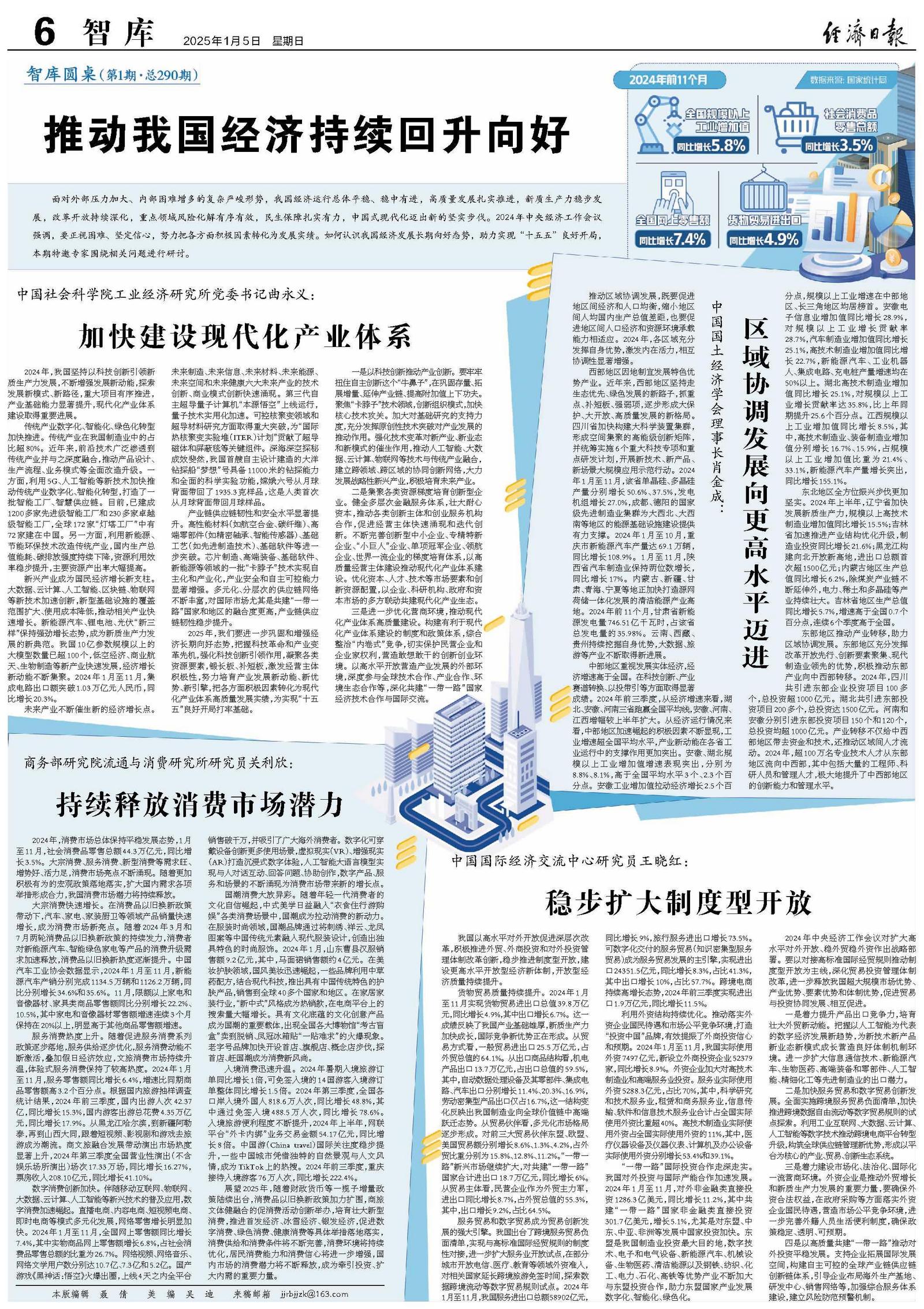 2025年,我们要进一步巩固和增强经济长期向好态势,把握科技革命和产业变革先机,强化科技创新引领作用,凝聚各类资源要素,锻长板、补短板,激发经营主体积极性,努力培育产业发展新动能、新优势、新引擎,把各方面积极因素转化为现代化产业体系高质量发展实绩,为实现“十五五”良好开局打牢基础。