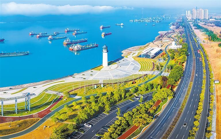 1月5日,湖北省宜昌市猇亭区灯塔广场,在冬日阳光照耀下格外亮丽。该广场原为老旧砂石码头,经过改造,已成为当地市民休闲游玩好去处。