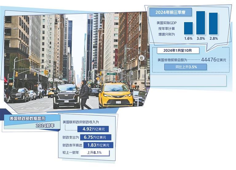 对美国来说,2024年是非同寻常的一年。一方面,美国经济虽整体温和增长,但仍面临重重挑战;另一方面,2024年美国大选是疫情后的首次政治格局“洗牌”,其结果直接影响美国未来的经济政策。回顾2024年,美国经济形势的主要表现是:个人消费支出平稳增长、私人固定投资增速放缓、贸易逆差持续扩大、制造业处于收缩区间、劳动力市场相对稳定、通胀回落速度放缓、财政赤字日益严重。此外,美国经济还面临诸多挑战,如产能利用率下降、劳动参与率较低、政府债务规模持续攀升、贸易保护主义日渐抬头等。具体而言,2024年美国经济形势具有以下特点。