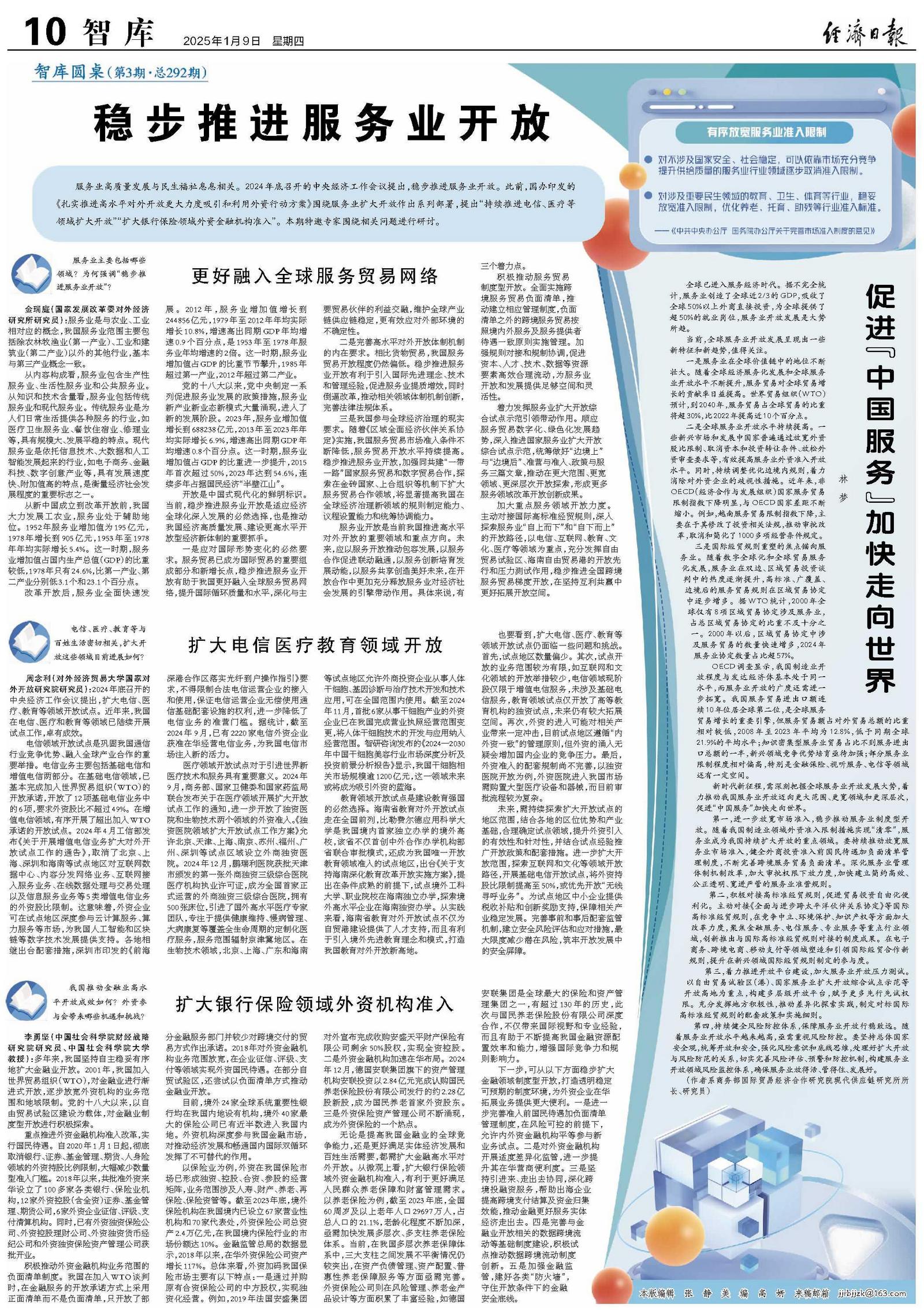新时代新征程,需深刻把握全球服务业开放发展大势,着力推动我国服务业开放迈向更大范围、更宽领域和更深层次,促进“中国服务”加快走向世界。